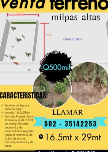 VENTA DE TERRENO en San Bartolome Milpas Altas _________________ 16.5…