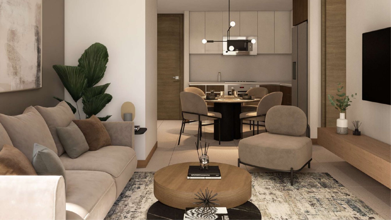 22 niveles de construcción, apartamentos de 1, 2 y 3 habitaciones, con más de 14 amenidades, 8 sótanos de parqueo