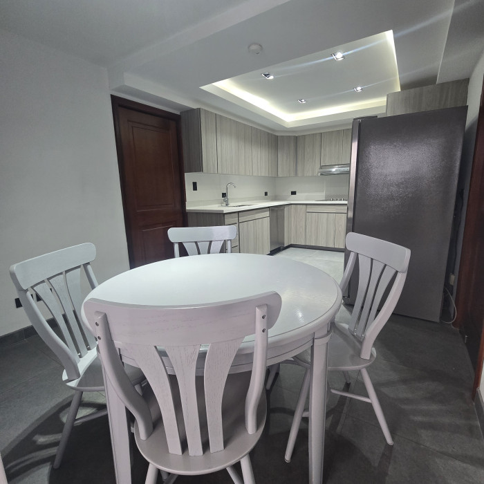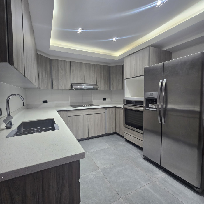 Cocina y lavandería equipadas con electrodomésticos (refrigeradora, horno, lavadora de platos, estufa y torre de lavadora y secadora. Amenidades: Gym, salón social, juegos para niños, parqueos para visitas .