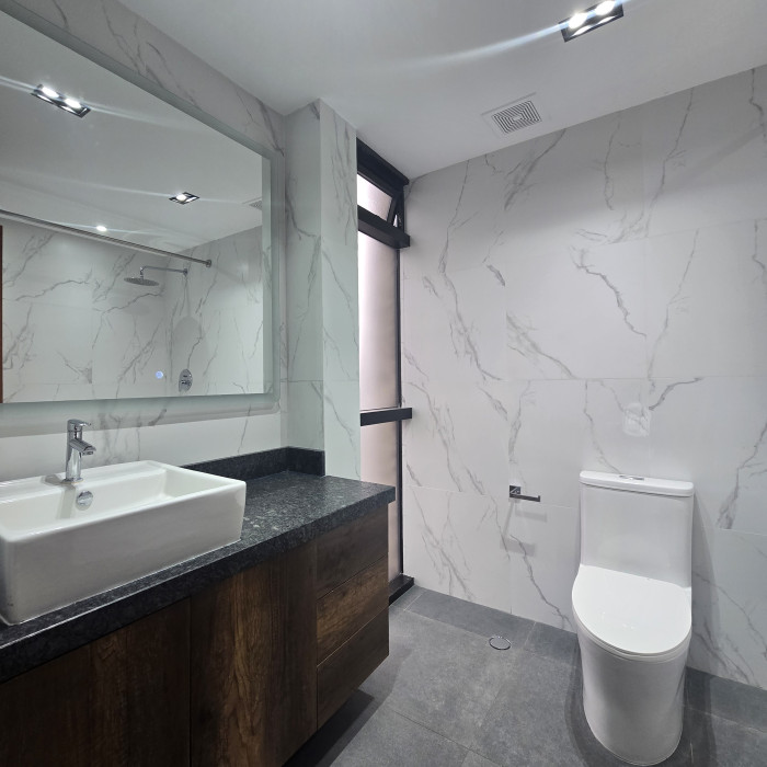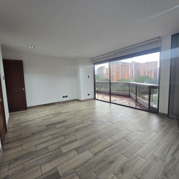 Apartamento en Renta de 3 habitaciones, dos de estas con acceso a balcón, 2.5 baños (habitación principal cuenta con tina) 2. Salas familiares, piso de madera en todas las habitaciones, cuenta con dos accesos principal y de servicio. 2. parqueos