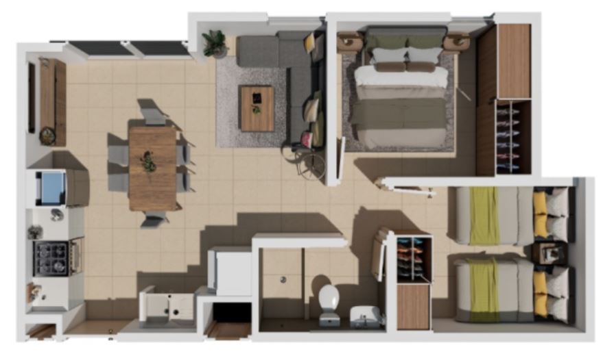 El Apartamento en Venta por su parte, cuenta con los siguientes Ambientes: