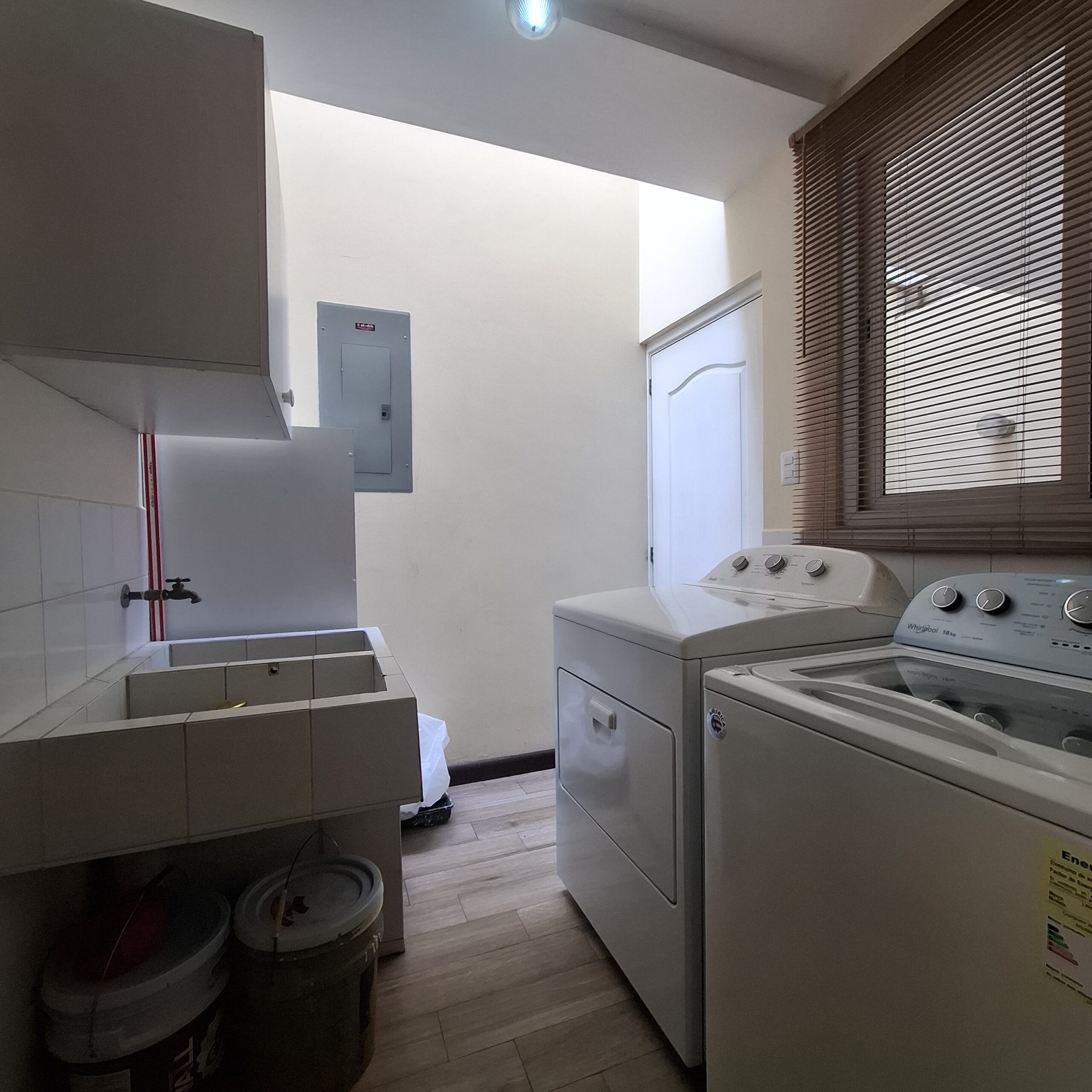 Esta equipada con calentador de agua, estufa, Refrigeradora, línea blanca lavadora y secadora todo nuevo para estrenar. Gabinetes de cocina, lamparas y en los tres dormitorios, cortinas blackout enrollables.