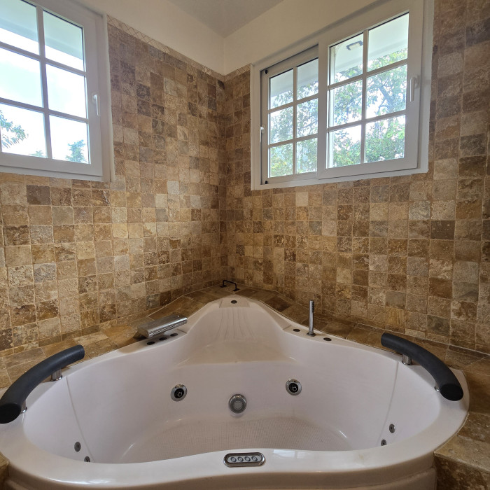 La propiedad cuenta con 5 habitaciones, 6 baños completos y 2 medios baños, además de áreas sociales y recreativas pensadas para toda la familia.
