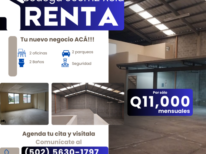 Bodega Xela QUETZALTENANGO Almacenaje nivel 1: 240.70m2 + mezzanine y…
