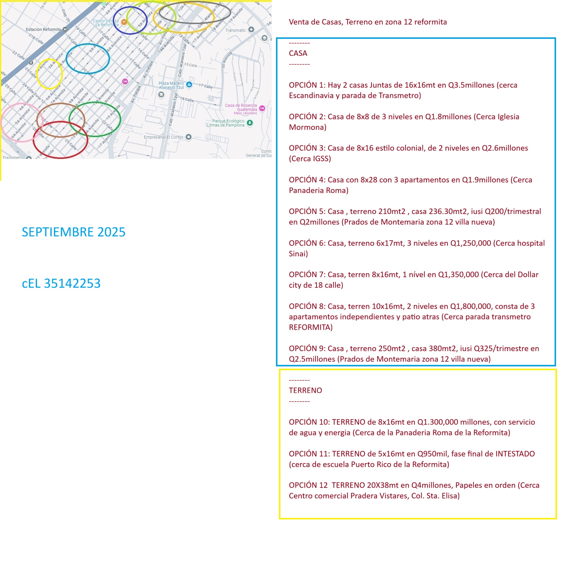 OPCIÓN 9.1: Casa, Terreno 200mt2, Precio Q3.5millones (Colonia Villa Sol zona 12)