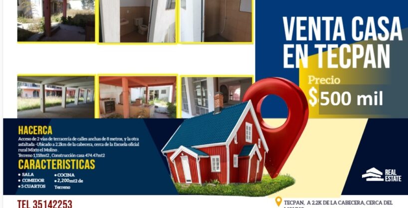 VENTA DE PROPIEDAD EN TECPAN GUATEMALA (Cerca a el Molino)