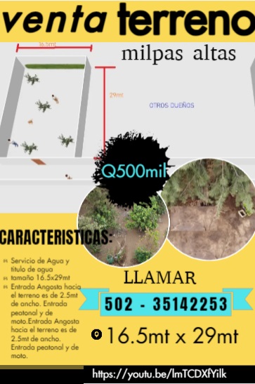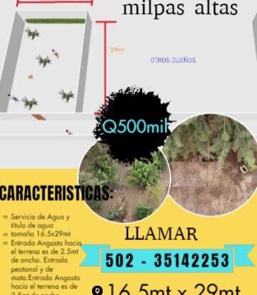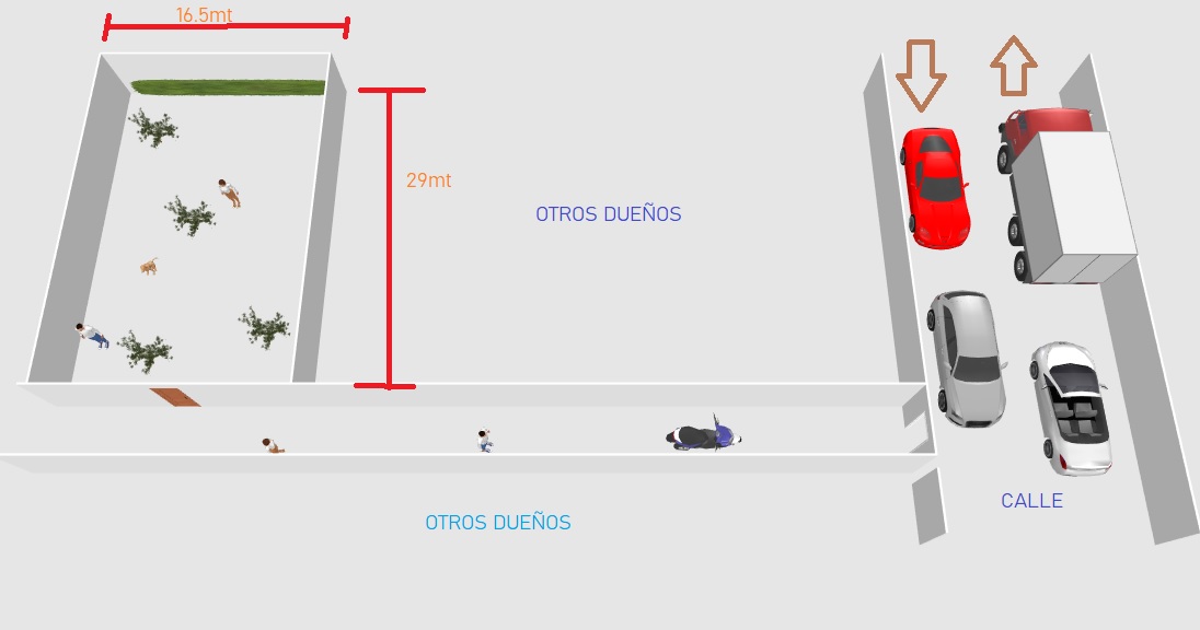 Nota 2: Entrada Angosta hacia el terreno es de 2.5mt de ancho. Entrada peatonal y de moto.